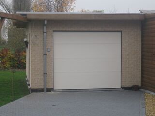 Een garagepoort op maat van Vervo combineert kwaliteit met maximale ruimtebesparing. Bij het openen schuift de poort verticaal onder het plafond, waardoor je vrijblijvende doorrijhoogte en plafondruimte optimaal benut blijven. Verkrijgbaar met of zonder automatisatie, volledig afgestemd op jouw wensen.